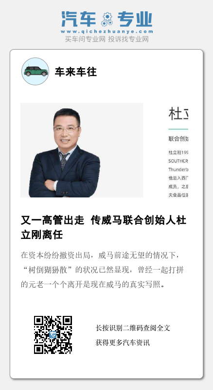 在资本纷纷撤资出局,威马前途无望的情况下,“树倒猢狲散”的状况已然显现,曾经一起打拼的元老一个个离开是现在威马的真实写照。