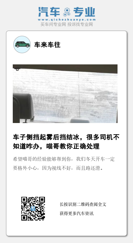 一个是侧挡挡风玻璃起雾和后视镜挂水珠看不清,还有一个就是后窗玻璃起雾结冰,导致看不清,所以喵哥给大家再解释一下。