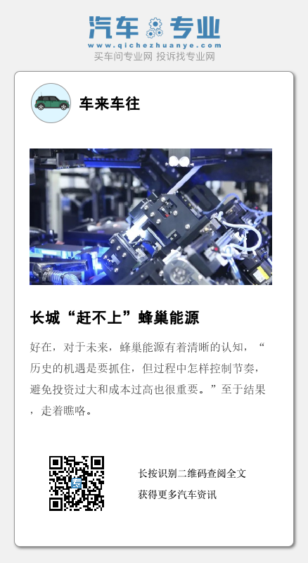 更重要的在于,蜂巢能源或者说长城能够在开放的态度中实现“技术换市场”,真正促使品牌与产业的破茧成蝶,成为产业链条中的规则制定者。
