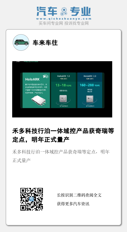 12月22日,禾多科技宣布,公司与地平线联合研发的自动驾驶域控制器HoloArk、智能前视相机HoloIFC已在今年获得奇瑞等多家自主车企定点,预计于2023年正式量产装车。