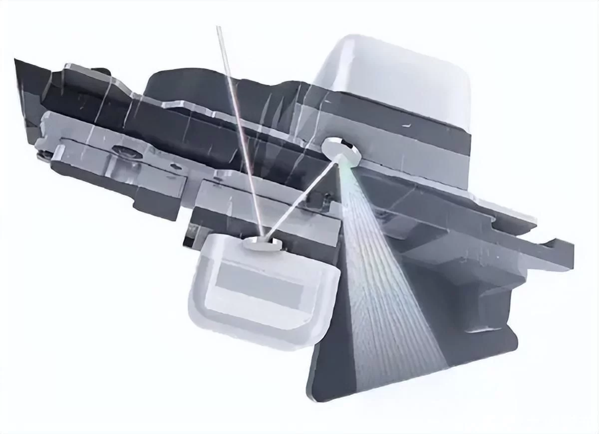 不过,已有车企联合灯具厂商将激光扫描式投影技术拿到了台面上。其基本原理为利用基于 MEMS 技术(Micro-Electro-Mechanical System, 微机电系统)所制成的高精度扫描镜,来周期性地在不同角度上依次反射激光光路,在投射面上形成远高于人眼反应速率的快速刷新图像。