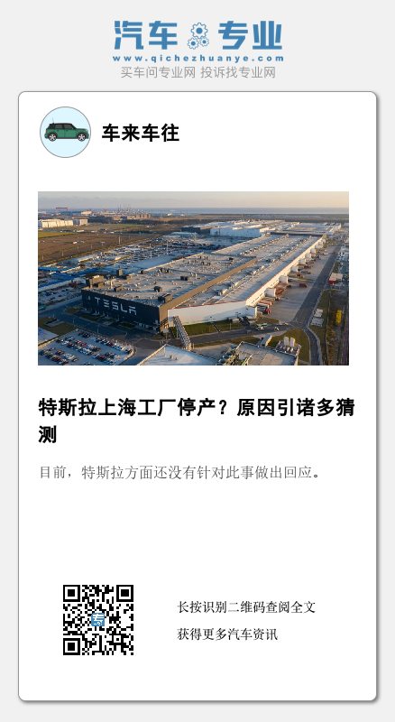 此外,《汽车专业网》编辑注意到,不久前,网上传出特斯拉上海超级工厂即将在年末最后一周暂停生产Model Y的消息。当时,有媒体报道称,据内部备忘录显示,特斯拉上海工厂将于12月25日至1月1日期间暂停生产Model Y。另据知情人士称,此次暂停生产Model Y是特斯拉此前制定的减产30%计划的一部分。彼时,特斯拉官方否认了这一传闻。
