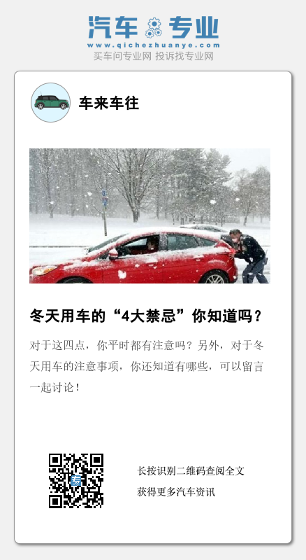 对于这四点,你平时都有注意吗?另外,对于冬天用车的注意事项,你还知道有哪些,可以留言一起讨论!