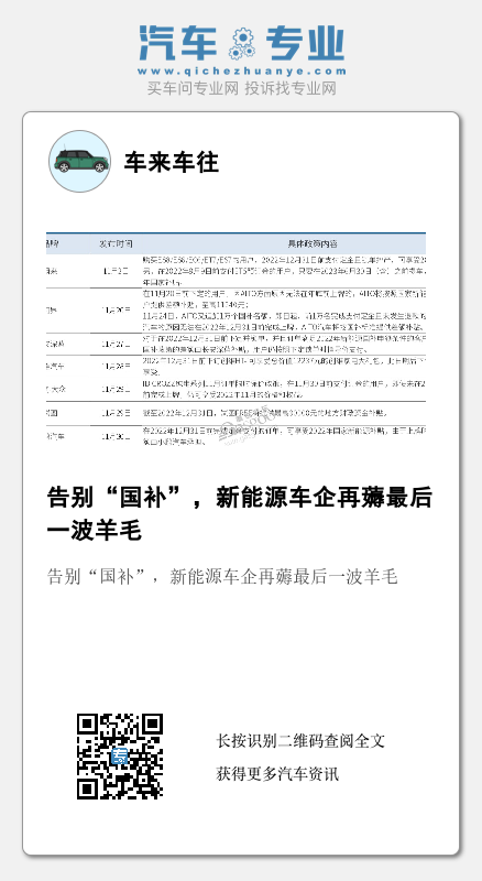 从上述20多家车企的举动来看,不管是锁单下定享国补的车企,还是“年内保价+年后涨价”的车企,二者虽然操作方式不同,但目的都是同一个:那就是借着“国补”退出前,尽可能使的拿到更多订单。