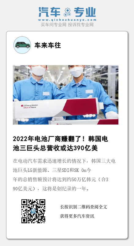 据外媒报道,在电动汽车需求迅速增长的情况下,韩国三大电池巨头LG新能源、三星SDI和SK On今年的总销售额预计将达到约50万亿韩元(合390亿美元),这将是创纪录的一年。