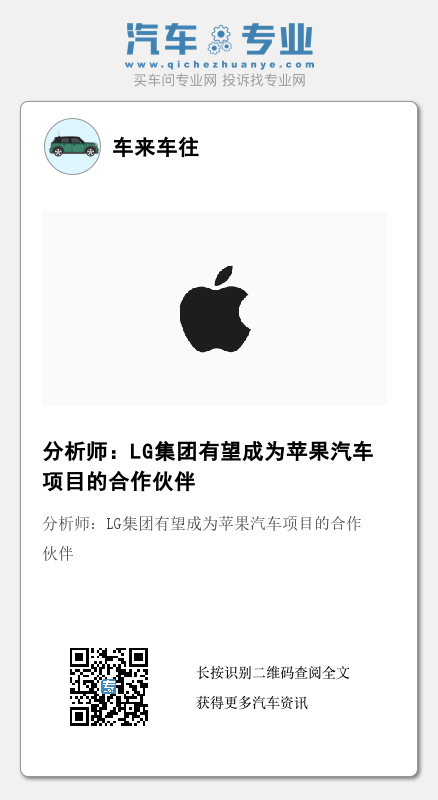 据悉,在KB Securities发表这篇报告之前,韩国媒体报道称,苹果已提议与LG集团合作,而LG集团已开始组建一个内部团队,负责合作的相关事宜,团队成员包括电池制造商LG新能源、汽车零部件制造商LG电子(LG Electronics)和摄像头模块制造商LG Innotek。但该报道没有透露任何人的名字。LG集团发言人在电话中表示,该报道不实,但没有详细说明。