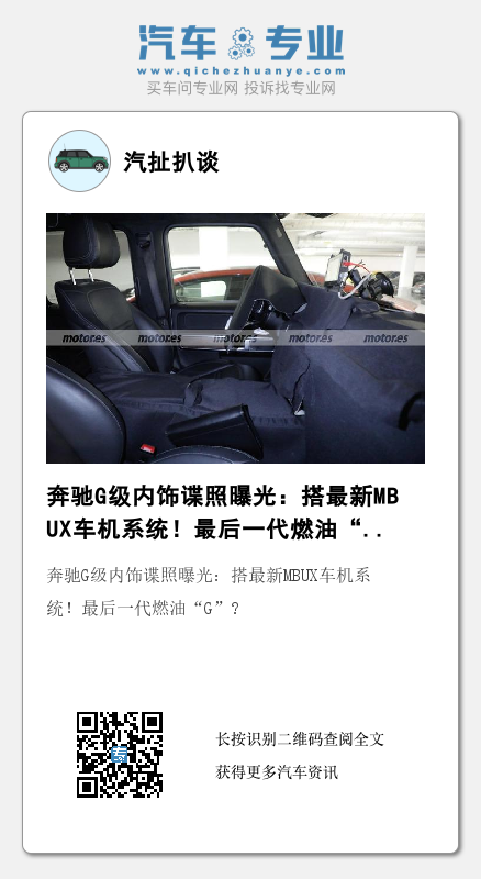 近日,我们从相关渠道获得一组海外拍摄的新款奔驰G级(图片|配置|询价)的内饰谍照,新车将搭载最新的MBUX车机系统,布局上进行小幅优化升级,动力上,4.0T V8发动机将会继续保留,或许会引入48伏轻混系统。