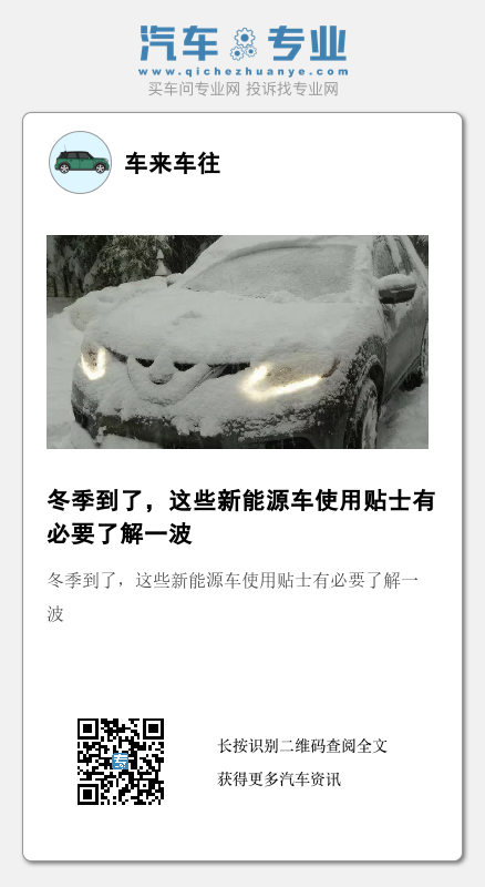 最后电池是电动车非常重要的组件,所以为了提高应对寒冷的冬季,我们尽量先做一次全面的检查,预防冬季出现一些意外,希望各位新能源车主在冬天也能享受到正常舒适的驾车体验。