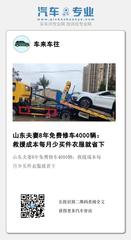 当记者问及为什么会选择免费救援,刘金花笑着告诉记者,最初,她是不理解丈夫做免费救援的,后来,发现他能在别人最需要帮助的时候帮别人一把,感觉很有成就感,也很有意义,慢慢地,便也加入进去了。“我们有维修汽车的技艺,这对我们来说都是一些力所能及的小事。免费救援的成本,平时每个月少买件衣服就解决了,也算是我们为社会做的一点贡献吧。”刘金花笑着说。