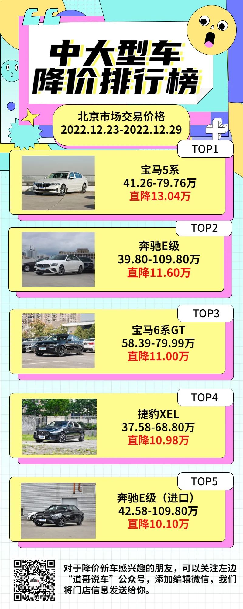 中大型车方面,同样是奔驰宝马优惠力度大,几款热销车型的降价幅度均超过了10万元,捷豹的一款车型降价逼近11万元也是值得考虑的。