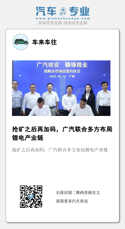 除联合狮溪煤业、遵义能源设立合资公司,下场抢矿外,今年8月,广汽集团旗下广汽埃安还与赣锋锂业签署了战略合作协议。