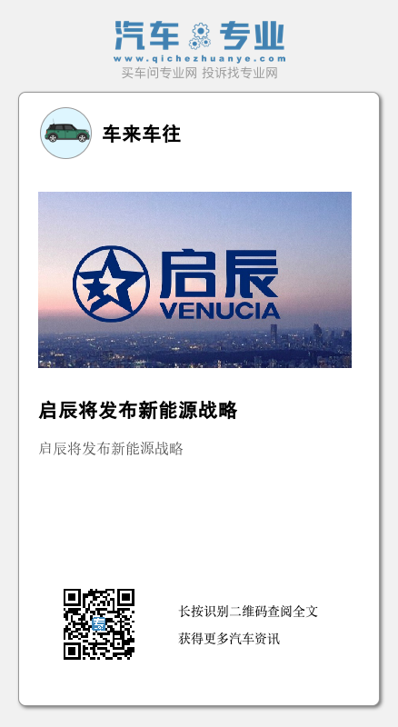 有消息称,在即将开幕的广州车展上,东风日产旗下启辰品牌将官宣启动新能源战略。据悉,启辰品牌将在车展上首发亮相两款新能源车型(其中包括一款概念车型)。
