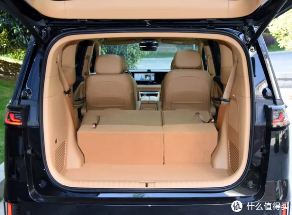 后排超级舒适,第二排两个并排的零重力座椅,宽大柔软,而且表面的仿皮材质亲肤感特别棒,如果想躺下,就可以调节成一张舒适的躺椅,另外还有加热、通风和按摩功能,即便是长途旅行,也丝毫不会觉得不舒服,感觉在飞机的头等舱里坐一样,非常的享受。第三排空间也不小,成年人躺在上面睡觉丝毫不觉得拥挤。