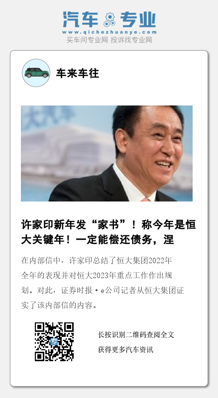 展望2023年,许家印在信中表示,“2023年是恒大履行企业主体责任、千方百计保交楼的关键年。我坚信,只要全体恒大人齐心协力、永不放弃,努力拼搏、苦干实干,一步一个脚印扎实做好全面正常施工、恢复销售、恢复经营等各方面工作,我们一定能完成保交楼任务,一定能偿还各种债务、化解风险,一定能开启涅槃重生的新篇章。”