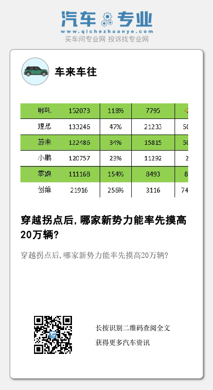 即便完成了既定目标,并坐上了新势力销量冠军的位置,哪吒汽车在展望未来时依然坦言,“2023-2025年,必将是一场艰难的挑战,也是哪吒汽车的生死之战”。此前,哪吒汽车CEO张勇曾表示,吒汽车销量达到30万到50万辆,才能够初步形成规模化能力,做到盈亏平衡。