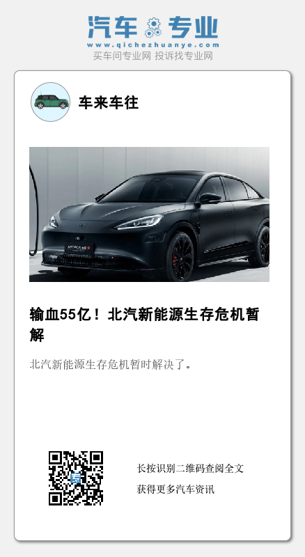 本次增资完成后,北汽新能源注册资本由53亿元增加至108亿元。这意味着持续亏损的北汽新能源,又有了生存下去的基础。