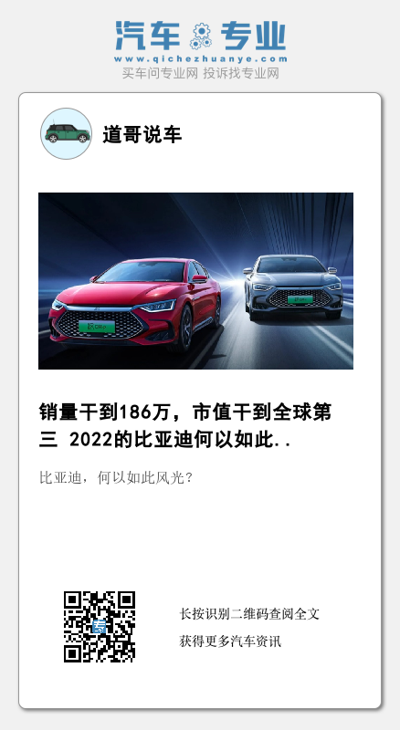 【文/道哥说车 听风吟】销量干到了186万,市值干到了全球第三,试问2022年,国内哪个车企能有比亚迪得意?