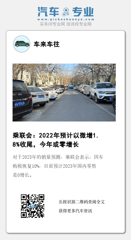 对于2023年的销量预测,乘联会表示,因车购税恢复10%,目前预计2023年国内零售是0增长。