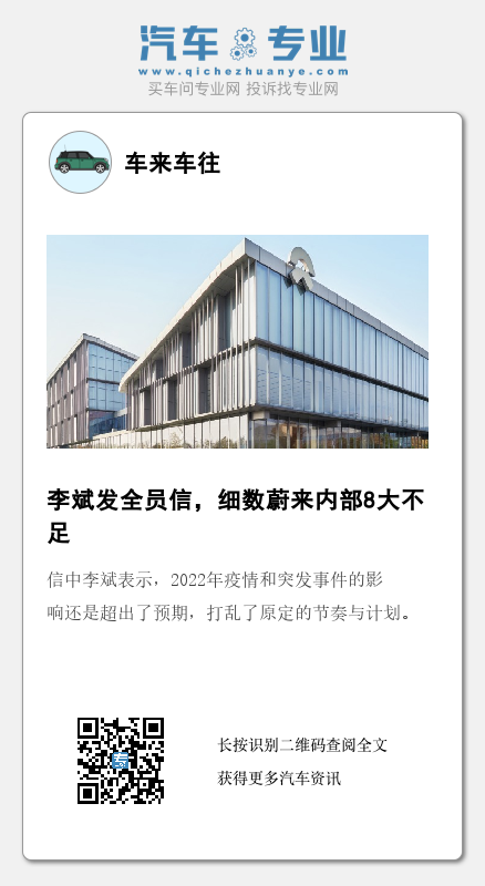 蔚来还传出了精简团队的信息。信中指出,2022年团队持续扩张,但职责不清晰、目标不一致、流程不完善、重复建设的情況比比皆是,效率还有非常大的提升空间。