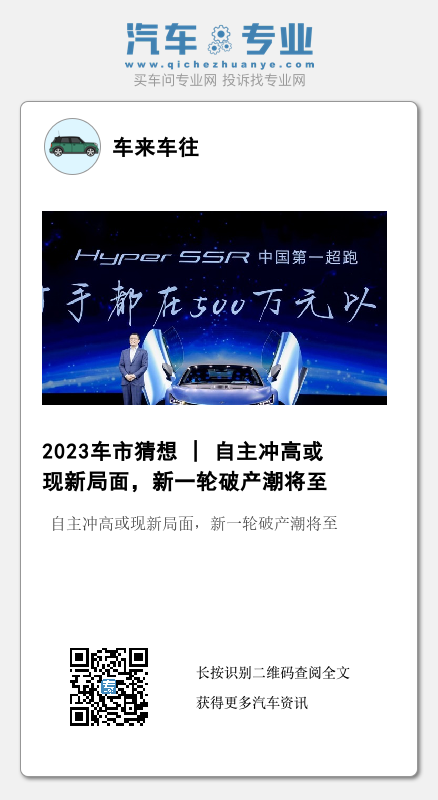 上文其实已经提到,进入2023年之后,不少二线新势力车企都面临着被淘汰的危机,再加上一些传统势力中的边缘品牌生存环境越来越差,国内汽车市场上或将掀起新一轮的破产潮。