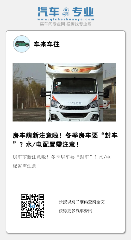 总结:房车封车前的准备工作比较讲究,尤其是水电路方面,冬季低温环境下很容易出现问题。当然只要大家做好前期工作,等到春季温度回升后,就可以顺利开上爱车旅居生活了。(图/部分来源于网络 文/郭豪)