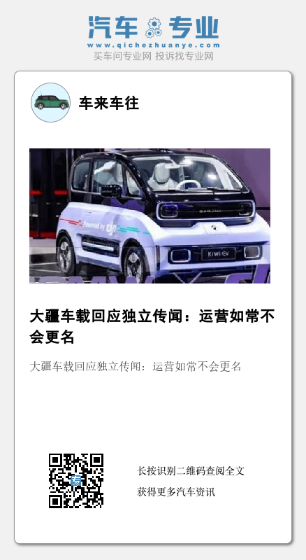 据财联社报道,近日,网上有传闻称,大疆车载部门独立,设立了新公司。对此,大疆车载方面回应称,部门运营如常,不会更名。
