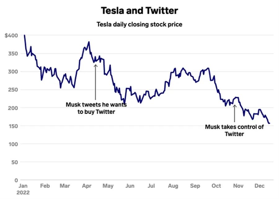 人们就开始觉得马斯克干什么都不对了,有人认为他不务正业,非要套现440亿美元去收购推特;有人认为他气数已尽;还有人哈哈大笑说“我早就知道他是个没有真材实料的大忽悠”。