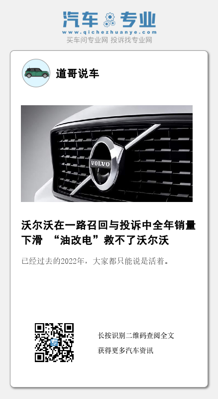 但比起更多受大环境影响而暂时停滞的同行,沃尔沃销量下跌或许与“人祸”有关,2022年以来,沃尔沃先后因车辆问题召回多次,同时还因与GALA乐队的“侵权”纠纷中消逝了不少路人缘。此外《道哥说车》编辑注意到,在车质网(第三方汽车投诉平台)上,有关沃尔沃旗下车型车门内侧车漆起泡、鼓包的投诉至今仍在增长。