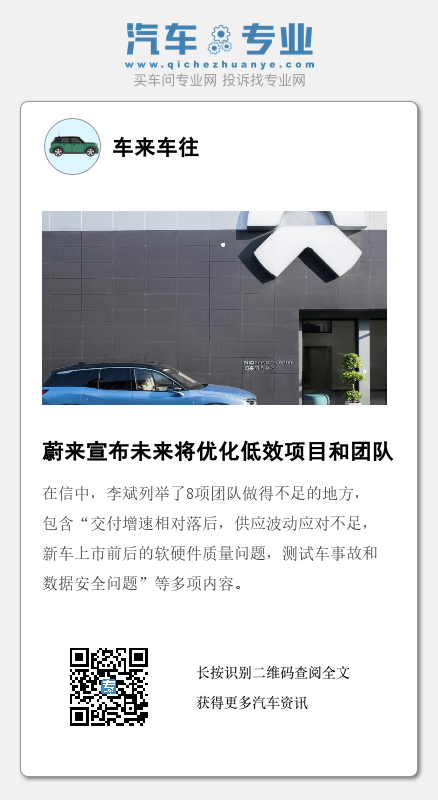 在信中,李斌列举了8项团队做得不足的地方,包含“交付增速相对落后,供应波动应对不足,新车上市前后的软硬件质量问题,测试车事故和数据安全问题”等多项内容。