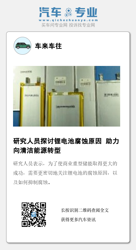 研究人员希望,这些建议能够帮助电池开发人员在锂电池抗腐蚀方面取得突破,从而延长电池的使用寿命。