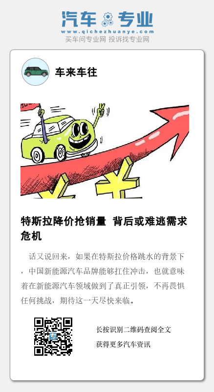 话又说回来,如果在特斯拉价格跳水的背景下,中国新能源汽车品牌能够扛住冲击,也就意味着在新能源汽车领域做到了真正引领,不再畏惧任何挑战,期待这一天尽快来临。