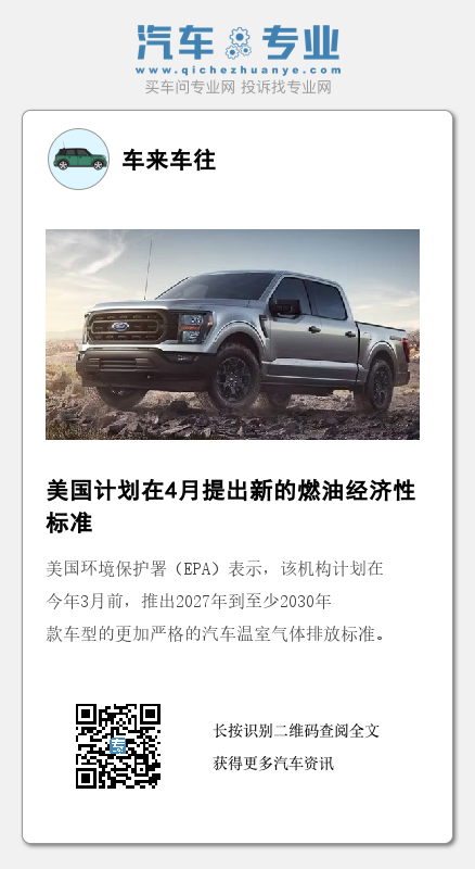 美国环境保护署(EPA)表示,该机构计划在今年3月前,推出2027年到至少2030年款车型的更加严格的汽车温室气体排放标准。