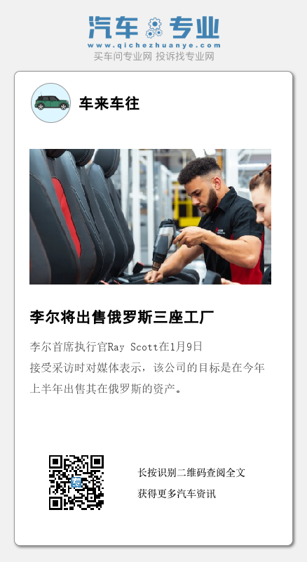 据外媒报道,在因俄乌局势升级而在俄罗斯暂停运营接近一年后,座椅与电子设备制造商李尔正在寻求出售其位于俄罗斯的三座工厂。