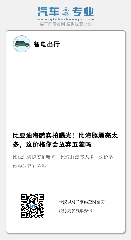 智电出行获得了比亚迪海鸥(图片)的实拍图和部分信息,新车最快将于第2季度上市。海鸥是比亚迪海洋网产品序列中最小的车型,预计售价区间为6万元-8万元,未来将与五菱晴空、奇瑞无界Pro等竞争。