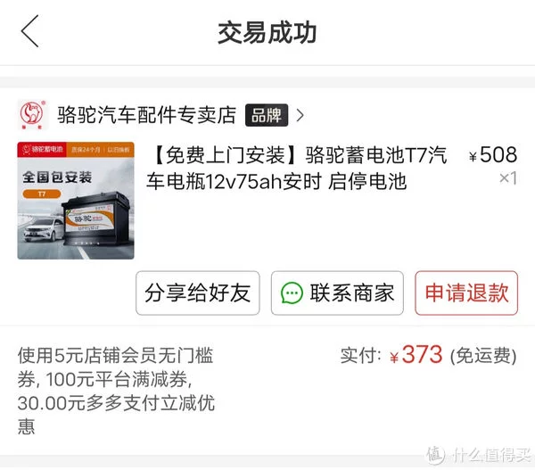 这里想重点说说购买历程,在对比某东、某虎的价格后,PD!D!>的价格让人眼前一亮,但随之而来的是担心,会不会是翻新电瓶之类的。但是有百亿补贴加持,然后反复确认了是否能激活官网的电子保卡,得到肯定答复后准备下单,更惊喜的来了,居然可以用摇一摇的500-100大额券,叠加30元支付券到手373元,同款产品某虎800+,有点上头的感觉。。