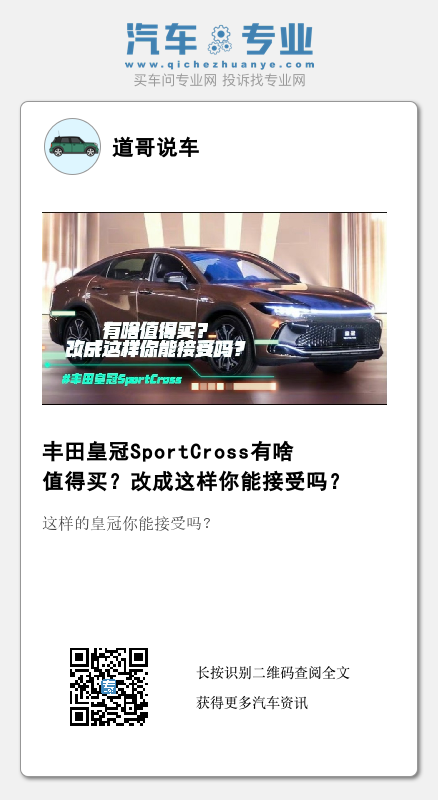丰田皇冠给我的印象那就是高端大气稳重,在以前有一辆丰田皇冠那也是倍儿有面儿!今天我们来聊聊这款最不像皇冠的皇冠,丰田皇冠SportCross。单从外观上看,这真是最熟悉的陌生人,整体造型和配色都非常的年轻化,一改往日稳重大叔形象变成帅气欧巴。搭载2.5L混动和2.4T混动的动力总成,经济性表现应该会有丰田车系一贯的优秀特质。这样的皇冠你能接受吗?