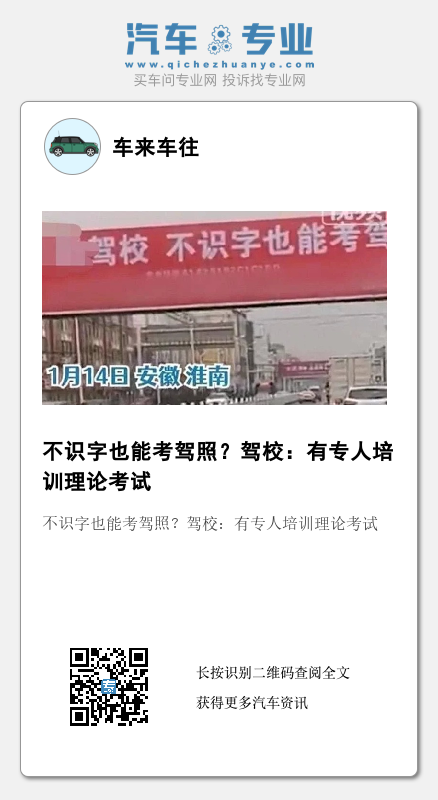 安徽淮南一驾校挂横幅打广告,称不识字也能考驾照,网友质疑科目一和科目四怎么通过?1月15日,该驾校多名工作人员向极目新闻记者介绍,这个培训业务确实存在,有专门讲师培训学员理论考试,教不识字的学员认字,学员报名前,可以来驾校测评文化程度,根据测评情况收取培训费。学员经过理论培训,如果3次考试未通过就可以退钱。