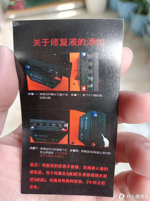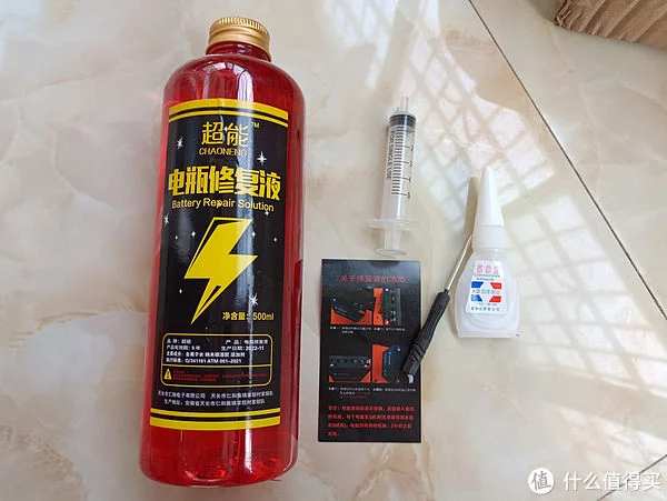 这个电池修复液挺唬人的,红色的液体也不知道是啥!看着还挺好看的。