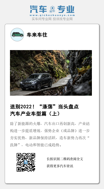 中国经济网汽车频道立足对产业的观察、行业的分析以及现场的采访、报道,选择在岁末年初之际,盘点2022年值得铭记的事件、企业(品牌)、人物、产品、社会责任等;并选用一个词——“涤荡”来总结、概括,将2022年的点滴呈现给读者,今日推出车型篇(上)。