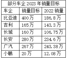 从已知的消息来看,传闻中比亚迪2023年的销量目标最为惊世骇俗,传闻称,2023年比亚迪销量将达到400万辆的目标。对此,比亚迪并未明确回应,而是表示,公司对2023年销售目标不好判断,因为受疫情影响,市场、消费需求及供应链体系等存在很多不确定性。