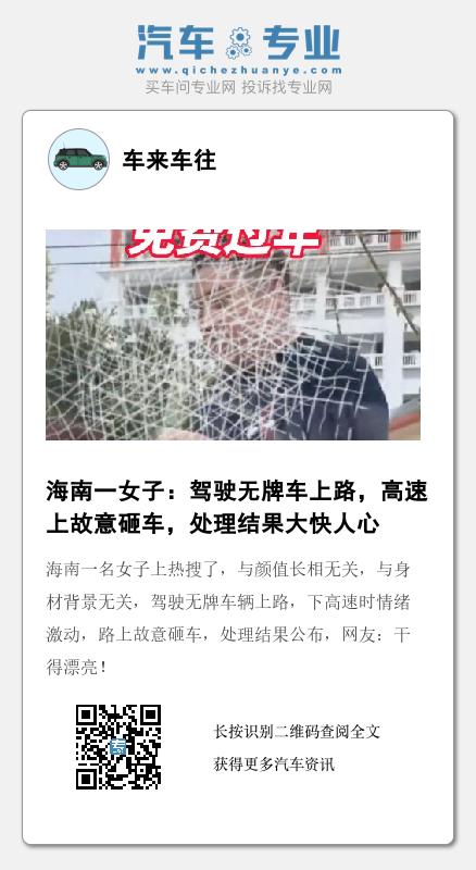 海南一名女子上热搜了,与颜值长相无关,与身材背景无关,驾驶无牌车辆上路,下高速时情绪激动,路上故意砸车,处理结果公布,网友:干得漂亮!