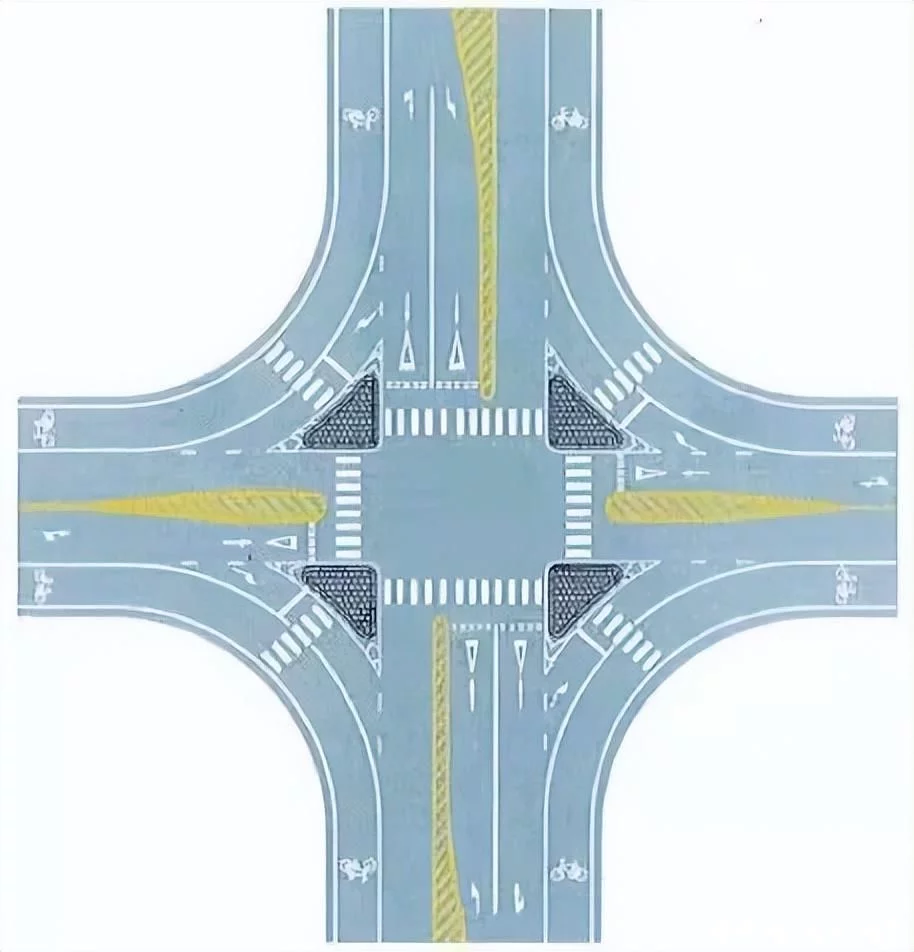 导流线主要用于过宽、不规则或行驶条件比较复杂的交叉路口,立体交叉的匝道口或其他特殊地点。