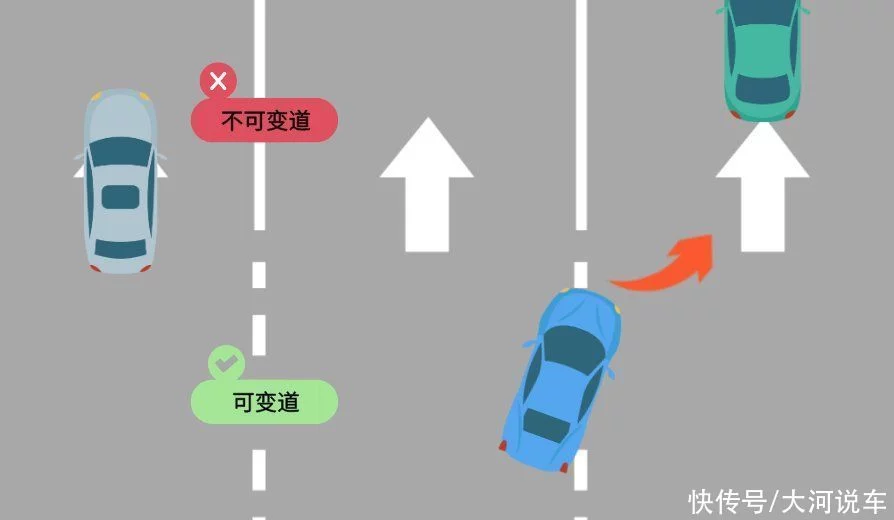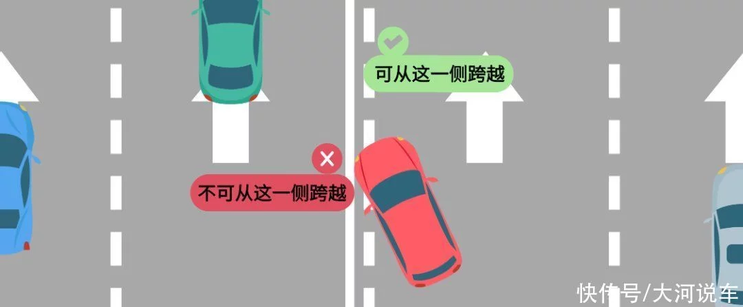 车辆可以从虚线的一侧跨越