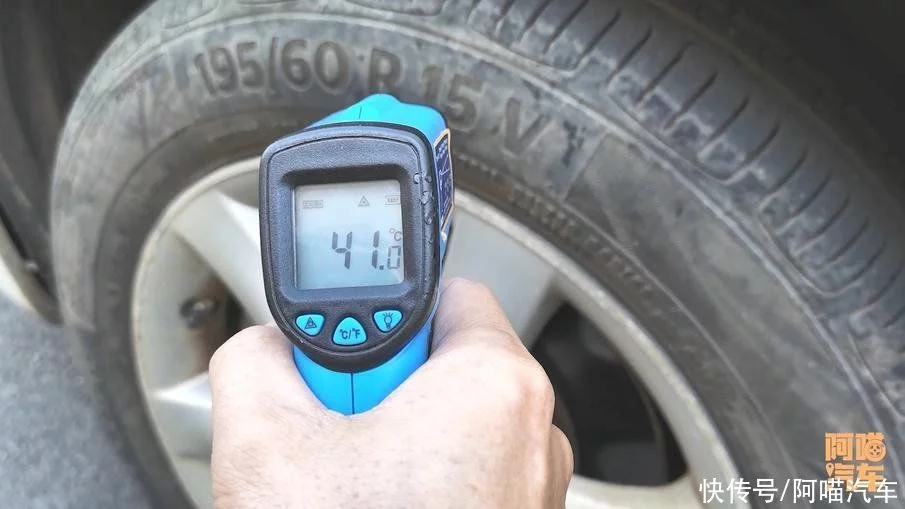跑之前我特意测了一下,我这两边轮胎的温度是差不多的,但是我跑了5公里以后,测两边我轮胎的温度轮胎。胎压低这边,它的温度明显高了,而且比那边是高的多。
