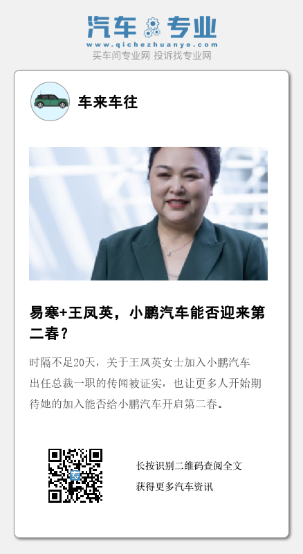 时隔不足20天,关于王凤英女士加入小鹏汽车出任总裁一职的传闻被证实,也让更多人开始期待她的加入能否给小鹏汽车开启第二春。