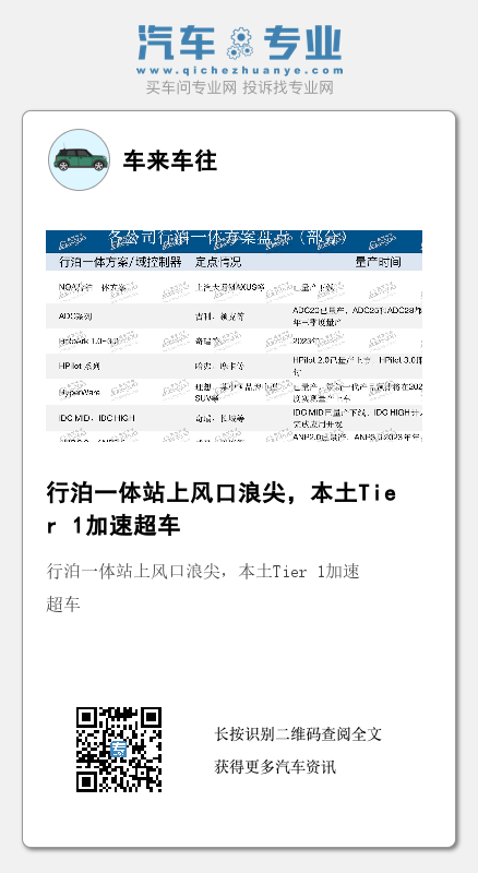 所以,虽然外资Tier1 虽有先天优势,但在本土 Tier1 在行泊一体领域的竞争也并不小,抓住行泊一体的机遇,是本土Tier 1“逆袭”的一个重要机遇。