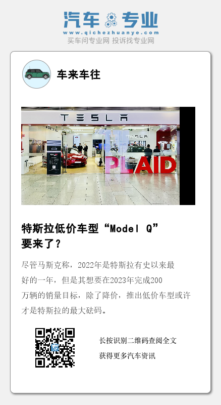 尽管马斯克称,2022年是特斯拉有史以来最好的一年,但是其想要在2023年完成200万辆的销量目标,除了降价,推出低价车型或许才是特斯拉的最大砝码。