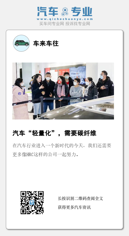 碳纤维在汽车行业的应用也是一点一点推动的,而汽车轻量化也并不是简单地用另一种材料替换一种材料,同时还需要根据新材料的特性对设计进行更改,以提高可制造性及材料利用率。在汽车行业进入一个新时代的今天,我们还需要更多像HRC这样的公司一起努力。