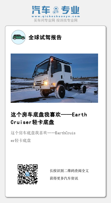 从今年四月开始,EarthCruiser开始将旗下的轻卡平台从三菱Fuso轻卡升级为五十铃NPR平台,主要面向救援、房车等领域。而在国内市场,五十铃NPR系列的700P四驱底盘,也有不少房车运用,只是美中不足的是,价格都不便宜。其实在国内的房车产业里,最缺的就是四驱的平台。要是有这么一个平台,不知道该多好,你说呢?