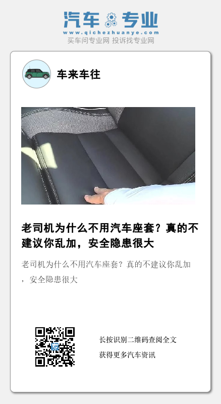 当我们在高速上行车,万一发生了交通事故,车上的座椅都套上了座套或者坐垫,关键时刻万一因为坐垫导致汽车的摩擦系数不够,就会影响安全带的使用,从而对车上的人员造成损伤。